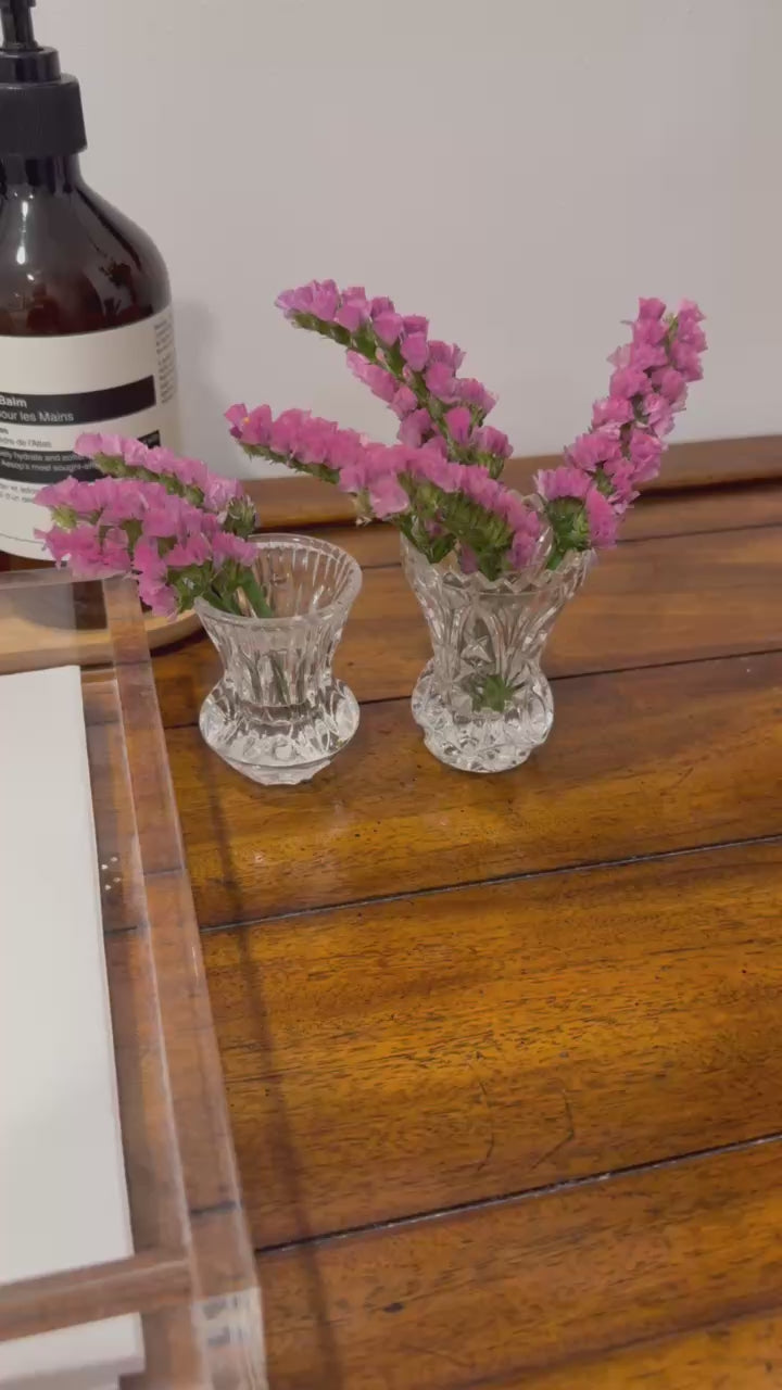Ideal for tabletop styling, windowsill displays, or as accent decor throughout your home, this versatile little vase adds elegant sparkle to any room. The compact size makes it perfect for small spaces, office desks, or creating lovely vignettes when grouped with other decorative pieces. A wonderful gift for housewarming, weddings, or anyone who loves vintage-inspired home decor.